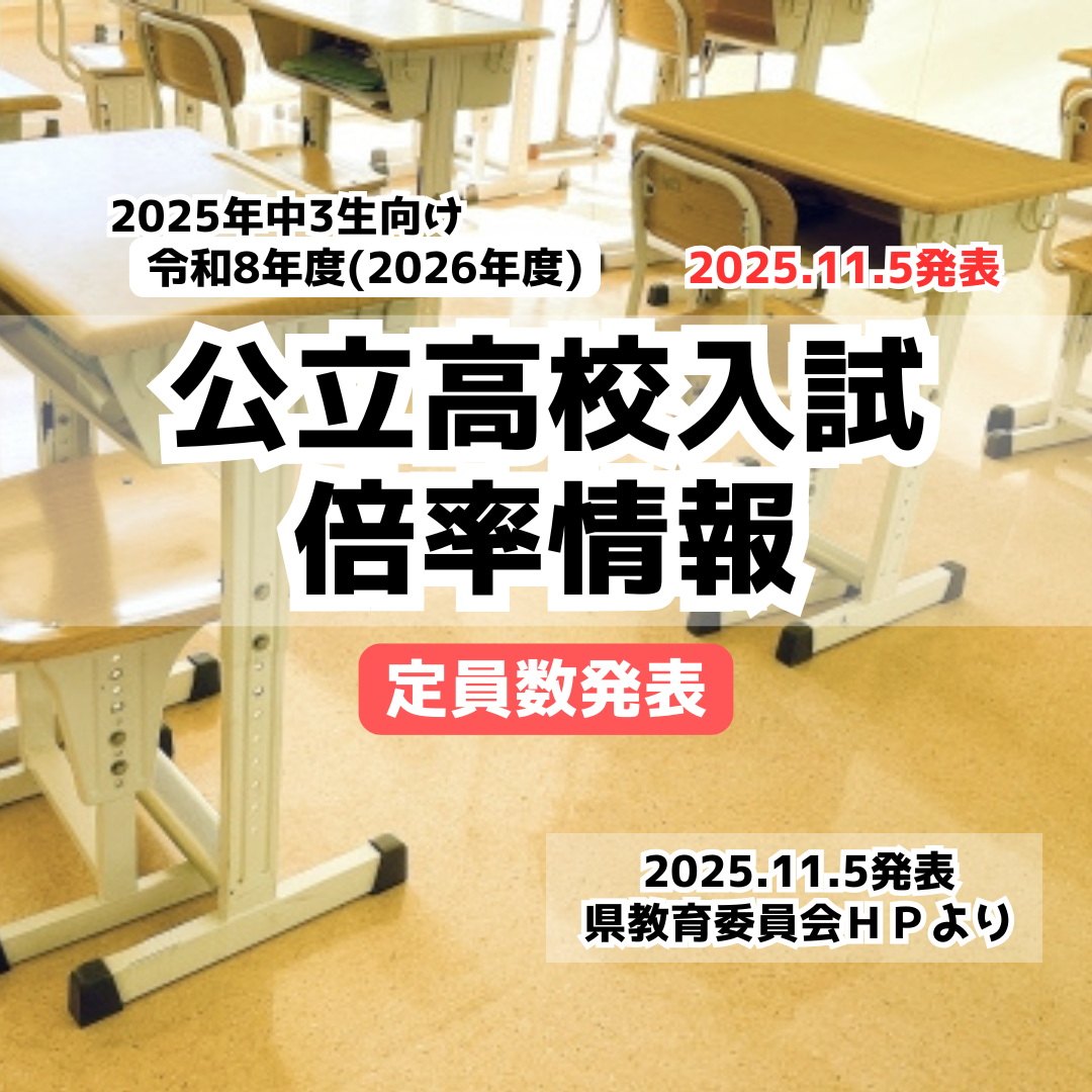 2025年11月5日(水)に令和8年度入試の各高校の定員数が発表されました。(山梨県)LEAFの近隣の高校の倍…