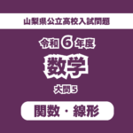 2026年1月31日 / 最終更新日時 : 2026年3月28日 LEAF 令和6年度(2024年度) 【過去問YN】R6(24)M5 山梨県公立高校入試 数学 大問5 関数線形 解答・解説は2ページ目にあります。(問題下のボタンより)PDFでダウンロードしたい方は下のボタンからダウンロードページにお進みください。 令和6年度 山梨県公立高等学校入学者選抜学力検査問題 数学 大問5 本ページに掲載 […]