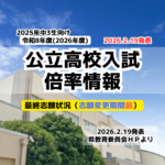 2025年度に中学3年の生徒(2026年の4月に高校入学)がメインの公立高校入試の倍率状況です。