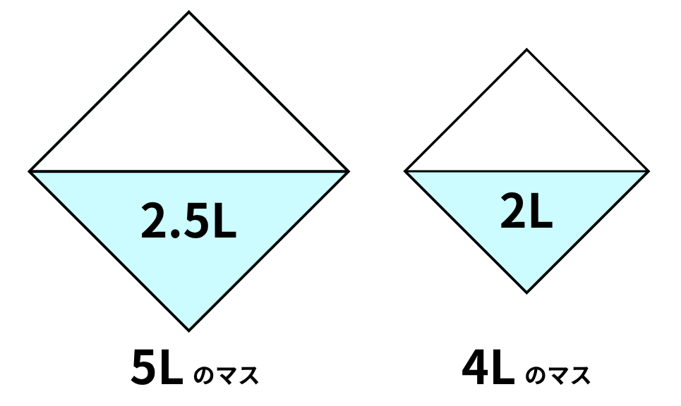 - 4Lの水を5Lのマスにすべて移す
