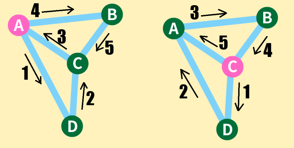 - 全ての頂点に繋がる線が偶数本である この場合、どこから書き始めても、必ず一筆書きができます。