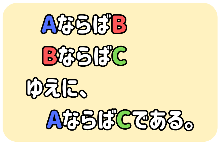 A・B・Cに初めの2文が成り立つように具体例を入れてみるとよいかもしれないですね。