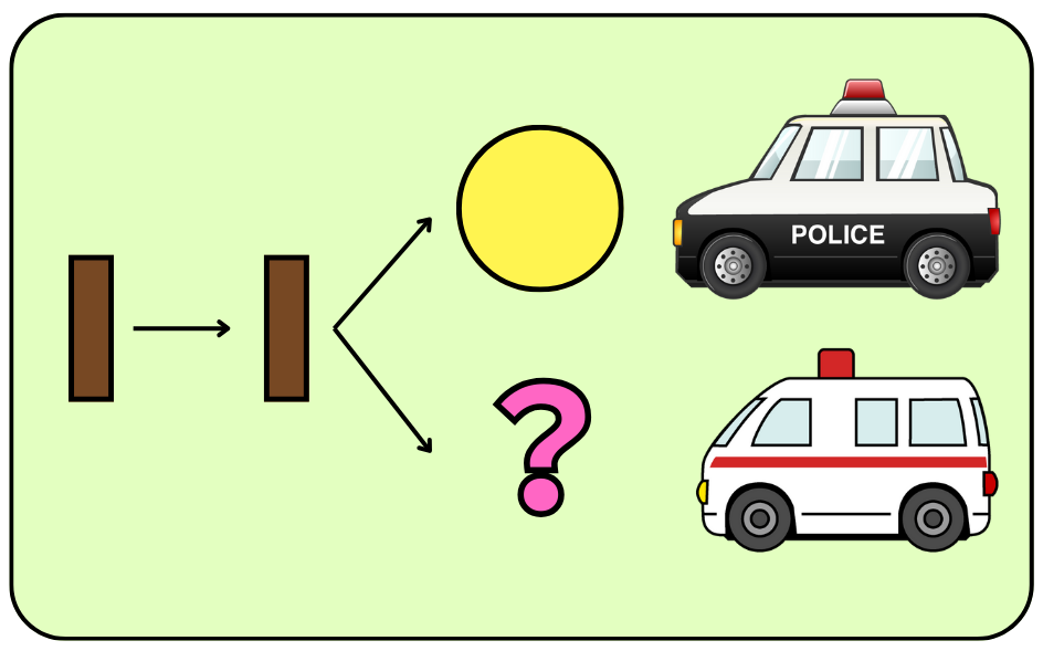 右のボタンのようなイラストがパトカーと救急車ということに気づくことができれば、答えも気づけるかもしれません。