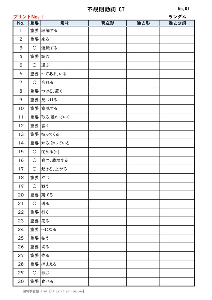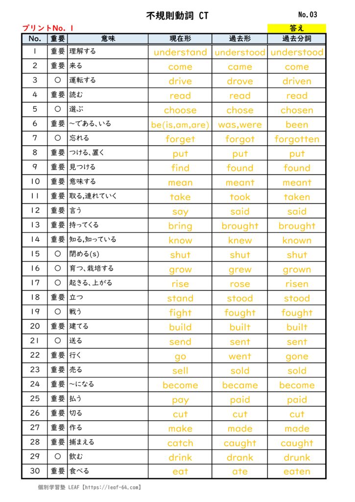【∞プリント】不規則動詞(英語)中1・中2・中3対象[#80]