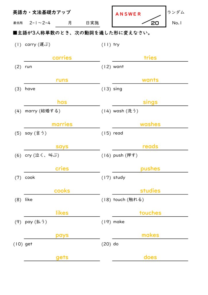 【∞プリント】文法基礎力アップ(英語)おもに中1対象[#91]