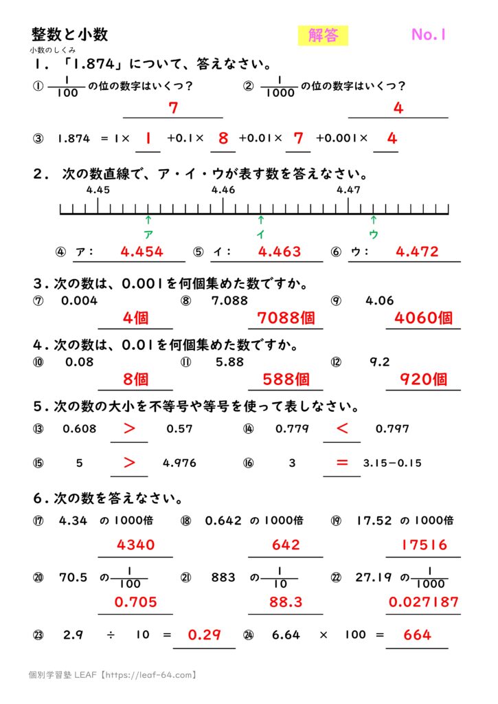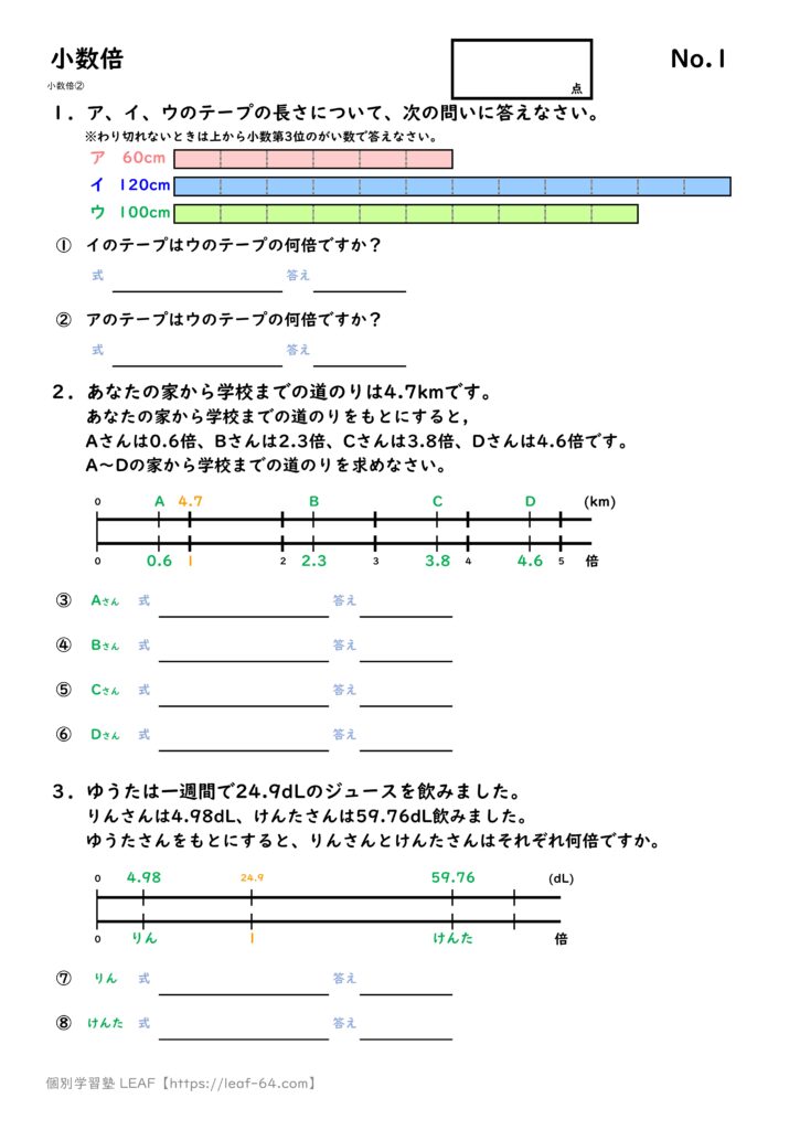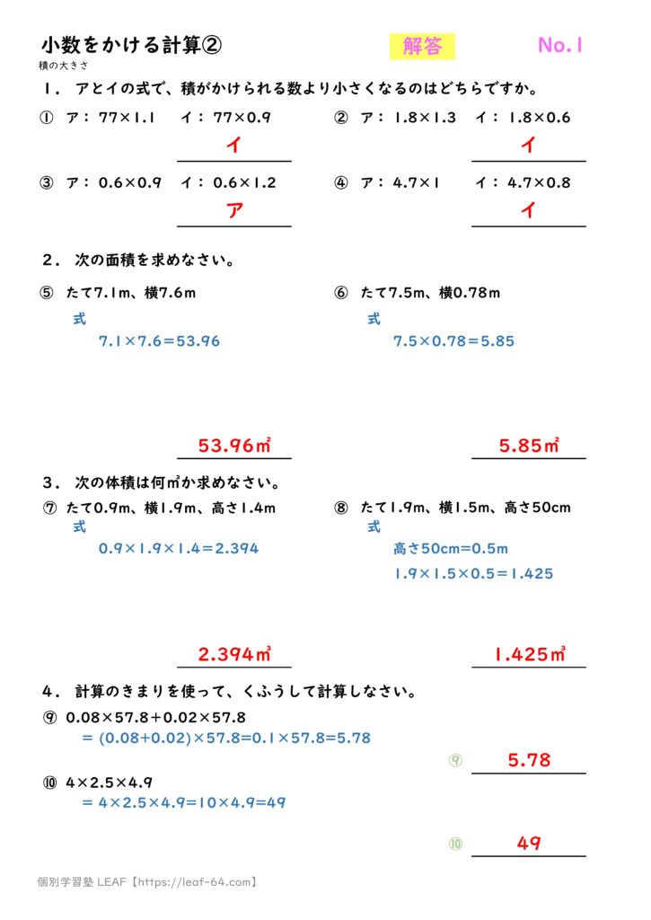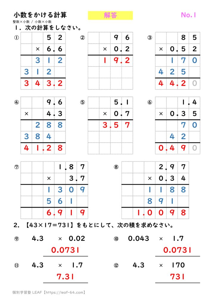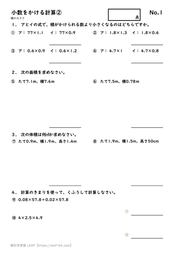 今回の∞プリントは「小数のかけ算とわり算」です。