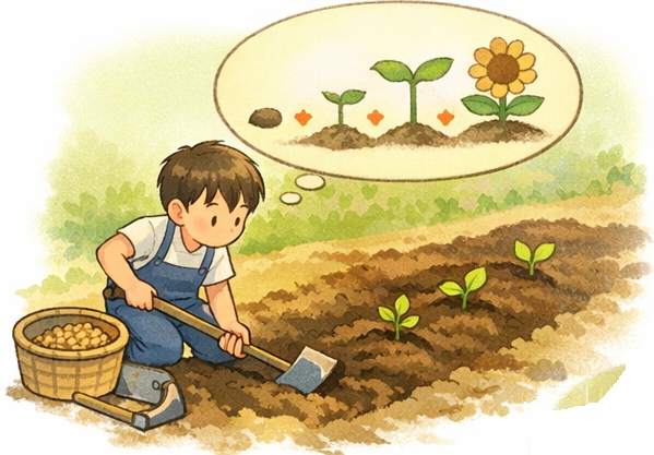 種まきは、時期を間違えると芽が出ません。秋に植えるべき球根を春に植えても、うまくいかない。子どもへの声かけも、同じです。