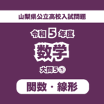 2026年2月7日 / 最終更新日時 : 2026年3月28日 LEAF 令和5年度(2023年度) 【過去問YN】R5(23)M5 山梨県公立高校入試 数学 大問5 関数線形 解答・解説は2ページ目にあります。(問題下のボタンより)PDFでダウンロードしたい方は下のボタンからダウンロードページにお進みください。 令和5年度 山梨県公立高等学校入学者選抜学力検査問題 数学 大問5-1 図1におい […]
