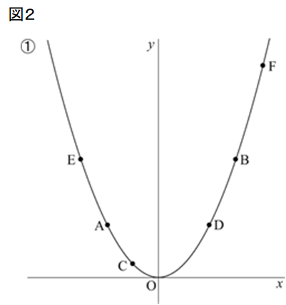 下の図1において,①は関数y=ax2y=ax^2のグラフである。