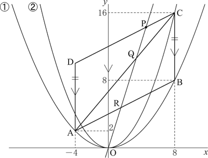 〔求め方1〕C(8,16)、D(-4,10)をにそれぞれ代入して連立方程式を解く。