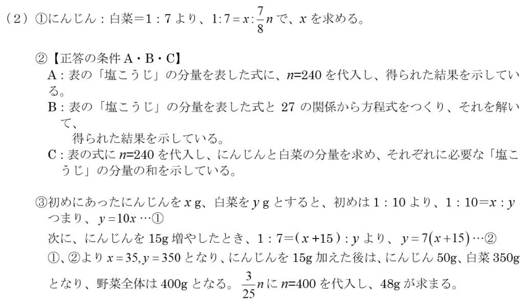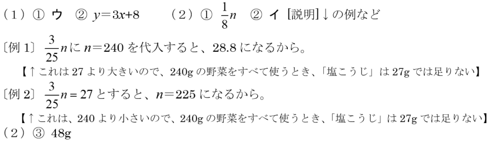 (2)① ② イ [説明] ↓の例 ③ 48g